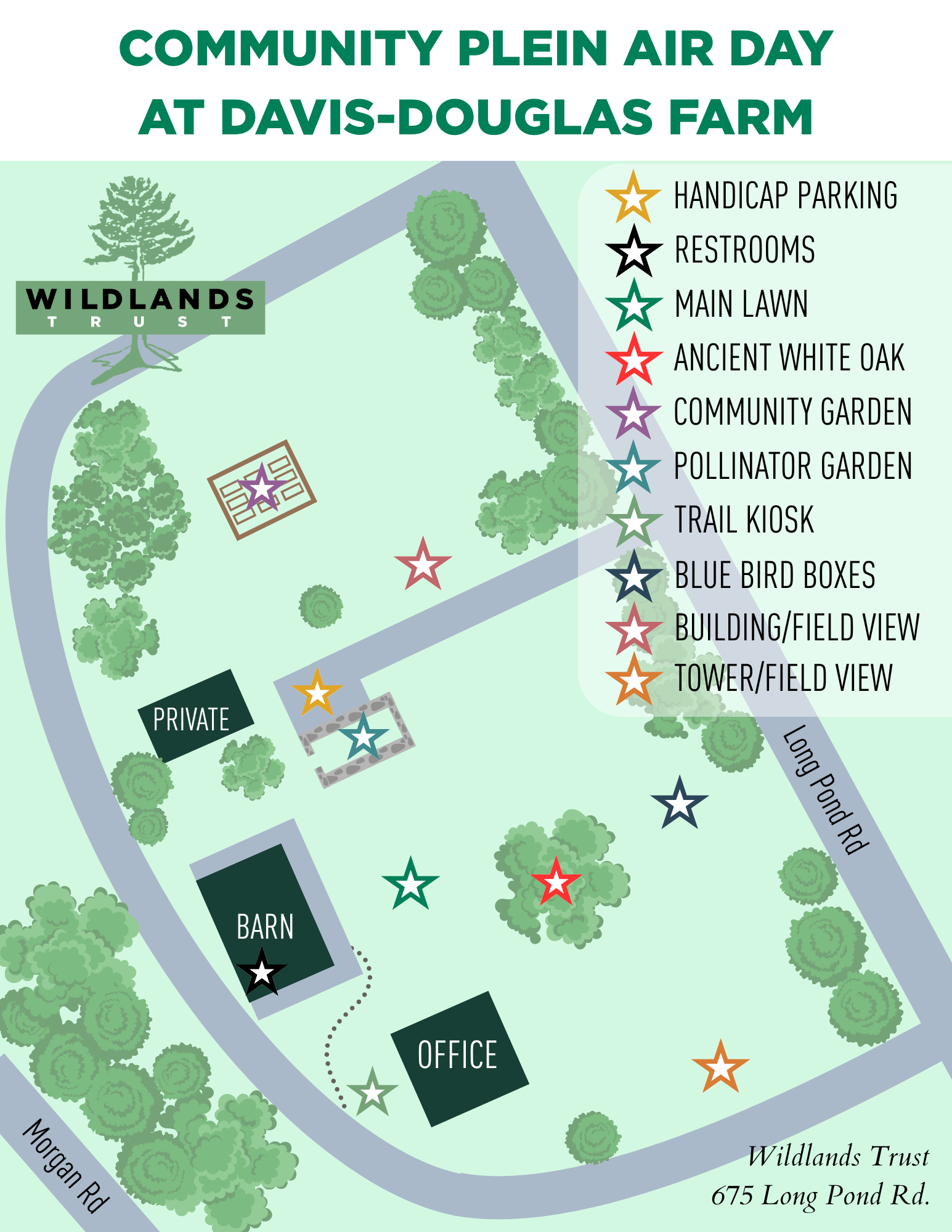 Meet at Wildlands Trust’s Davis-Douglas Farm, 675 Long Pond Road, Plymouth, MA 02360. Parking is available along the gravel road. Overflow parking can line the road on the left side. Then walk up the gravel walkway to meet us inside the barn.