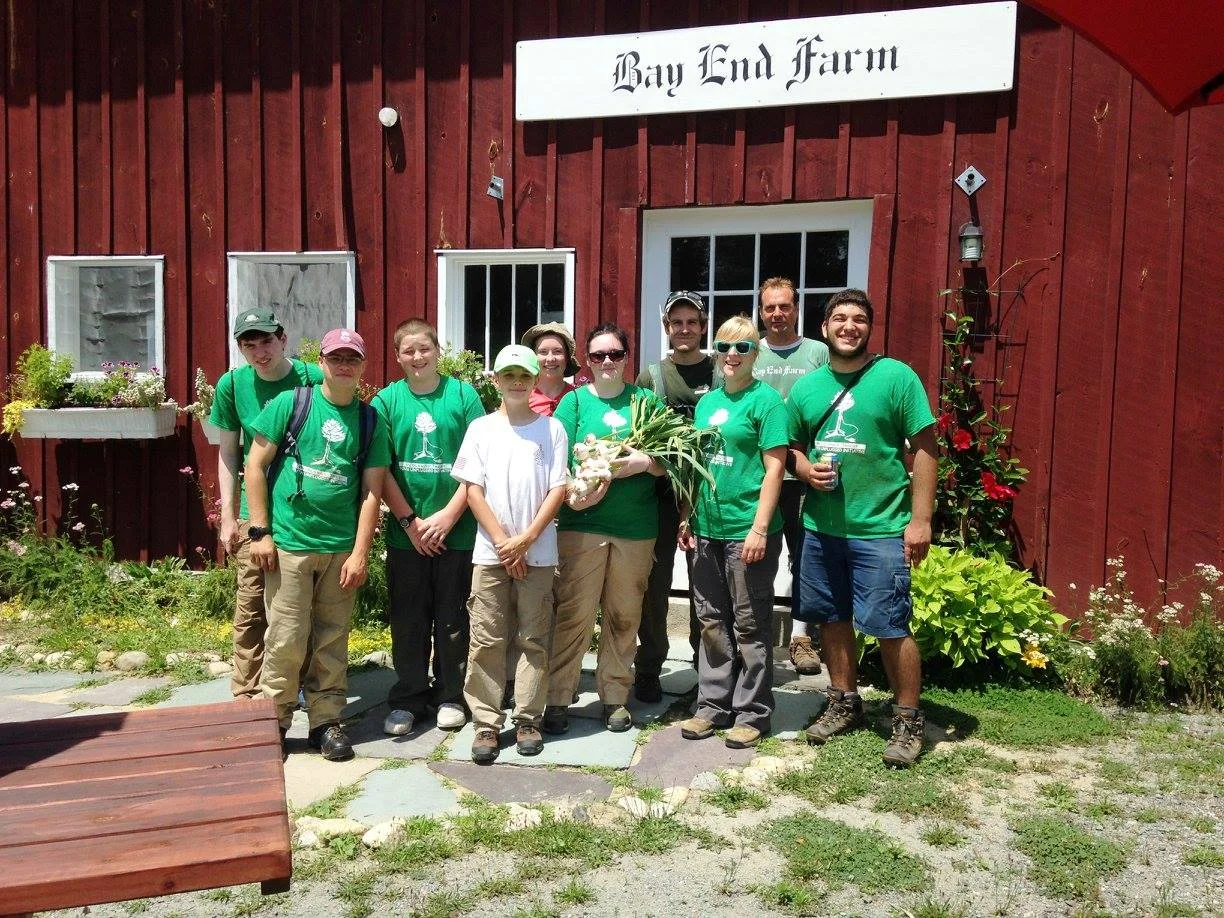 Green Team 2016 Crewmembers after a day of harvesting a processing garlic at Bay End Farm