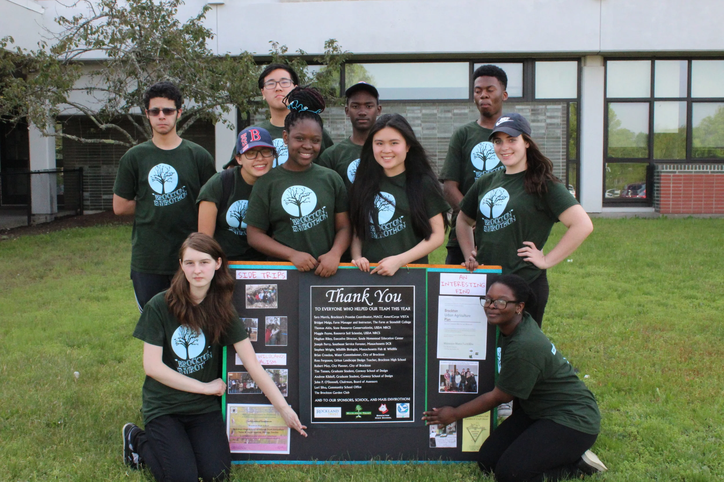 On May 18, 2017, the Brockton High School / Wildlands Trust Envirothon Team competed at their third consecutive Massachusetts Envirothon Competition. Teams from across the state spent the morning at Mass Audubon’s Drumlin Farms taking field tests in Forests, Wildlife, Soil, and Water, presenting their community research projects, and volunteering with the Student Conservation Association. Our team of ten dedicated students placed 6th overall in the state, took the 3rd place award for their Current Issue Presentation, and brought home the Community Research and Community Action Awards.
