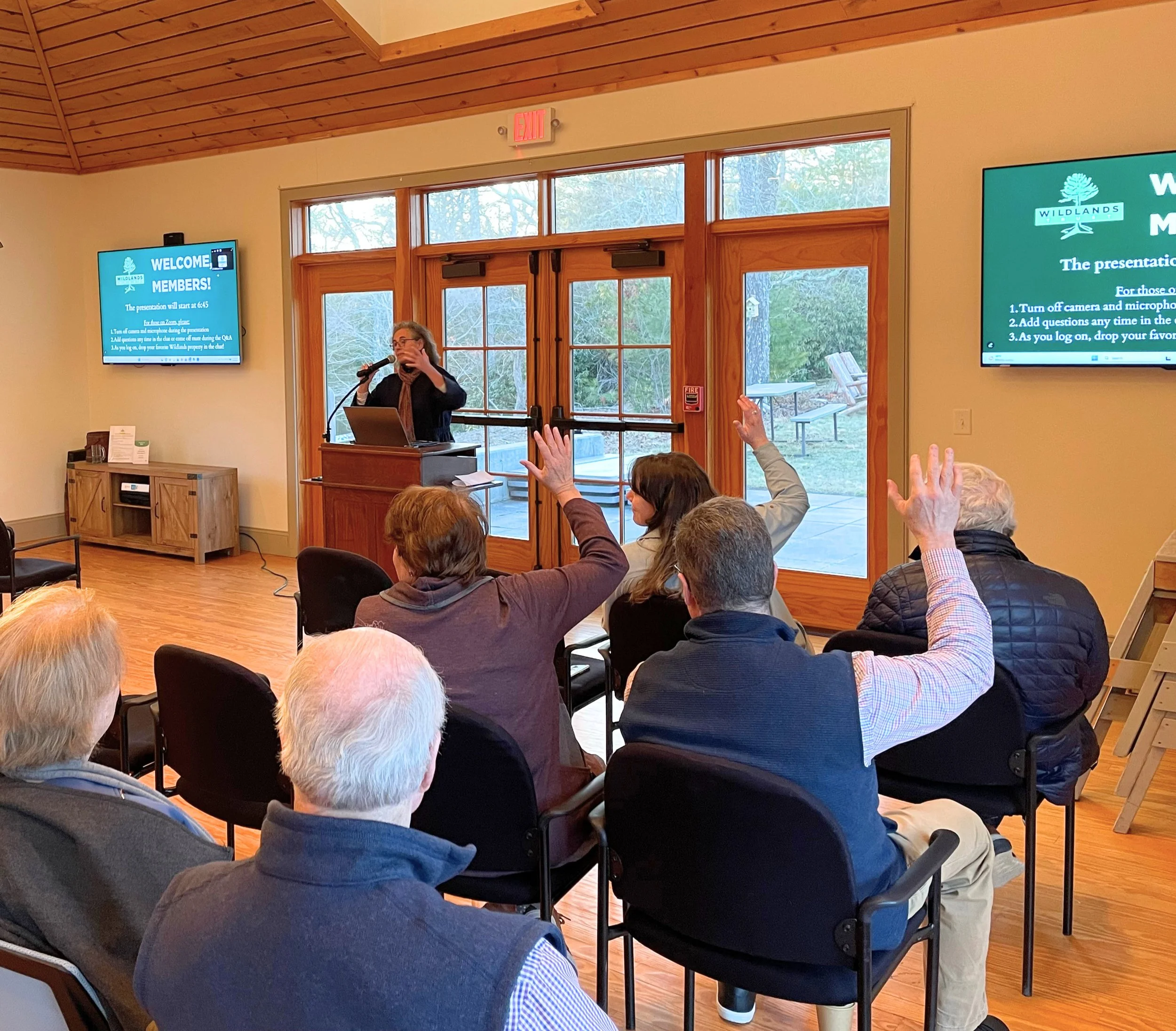 Wildlands President Karen Grey polls the audience at the Members Meeting.