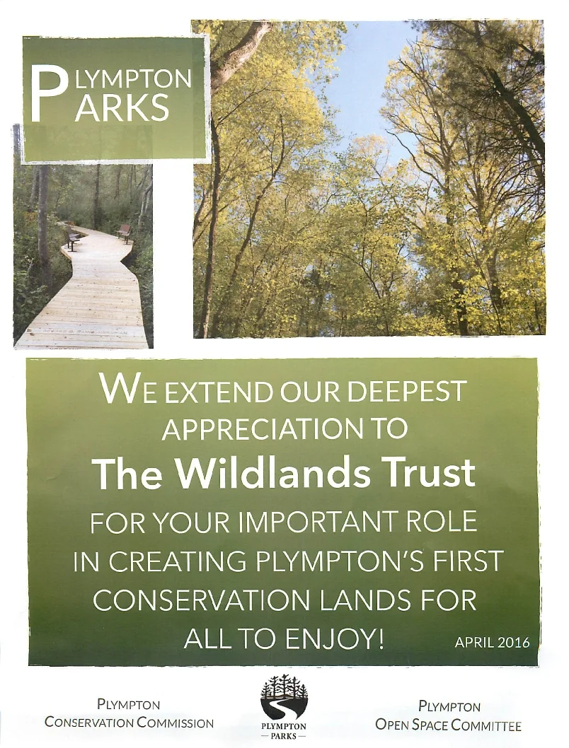 Wildlands Trust was honored to be part of the ceremony held recently to celebrate the opening of Plympton’s first conservation lands, Cato’s Ridge and Churchill Park.  Karen Grey, Executive Director of Wildlands Trust, was a featured speaker at the event held to honor the many partners who helped bring this project to fruition.  Grey’s comments addressed the importance of the Community Preservation Act in local land protection. In this case, a $22,000 contribution from Plympton CPA funds leveraged the permanent protection of over 100 acres of open space.