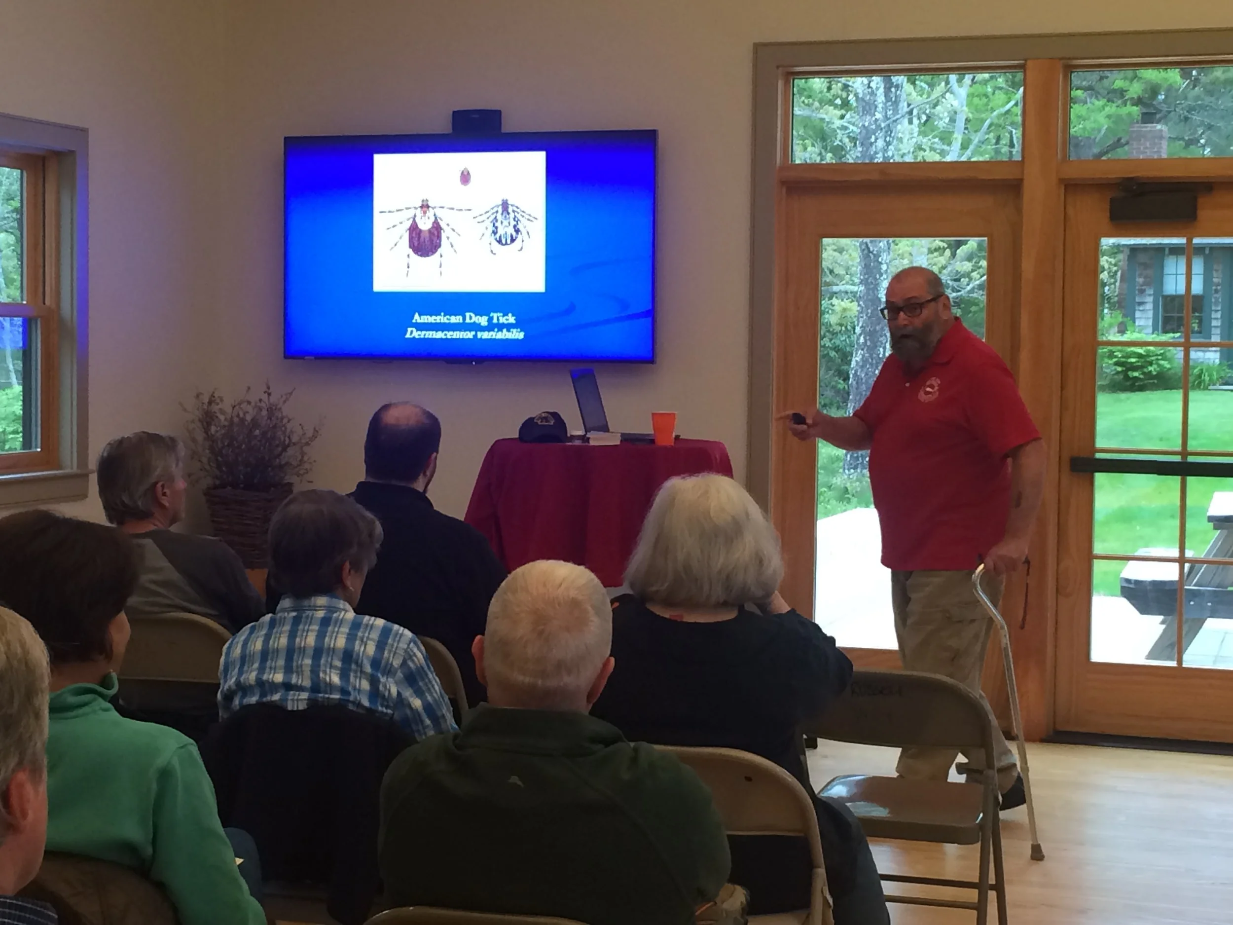 On Tuesday, May 23 Entomologist Larry Dapsis came to the Wildlands Trust Community Conservation Barn for a special presentation about ticks and tick-borne illnesses. Dapsis is the Entomologist for Barnstable County and Deer Tick Project Coordinator for Cape Cod Cooperative Extension. He works both to study tick populations and diseases and to educate the public. An engaged crowd of nearly 30 volunteers, members, and nonmembers made for an interactive program and lively discussion. If you missed it, or just want to review the information, you can download the PDF below.