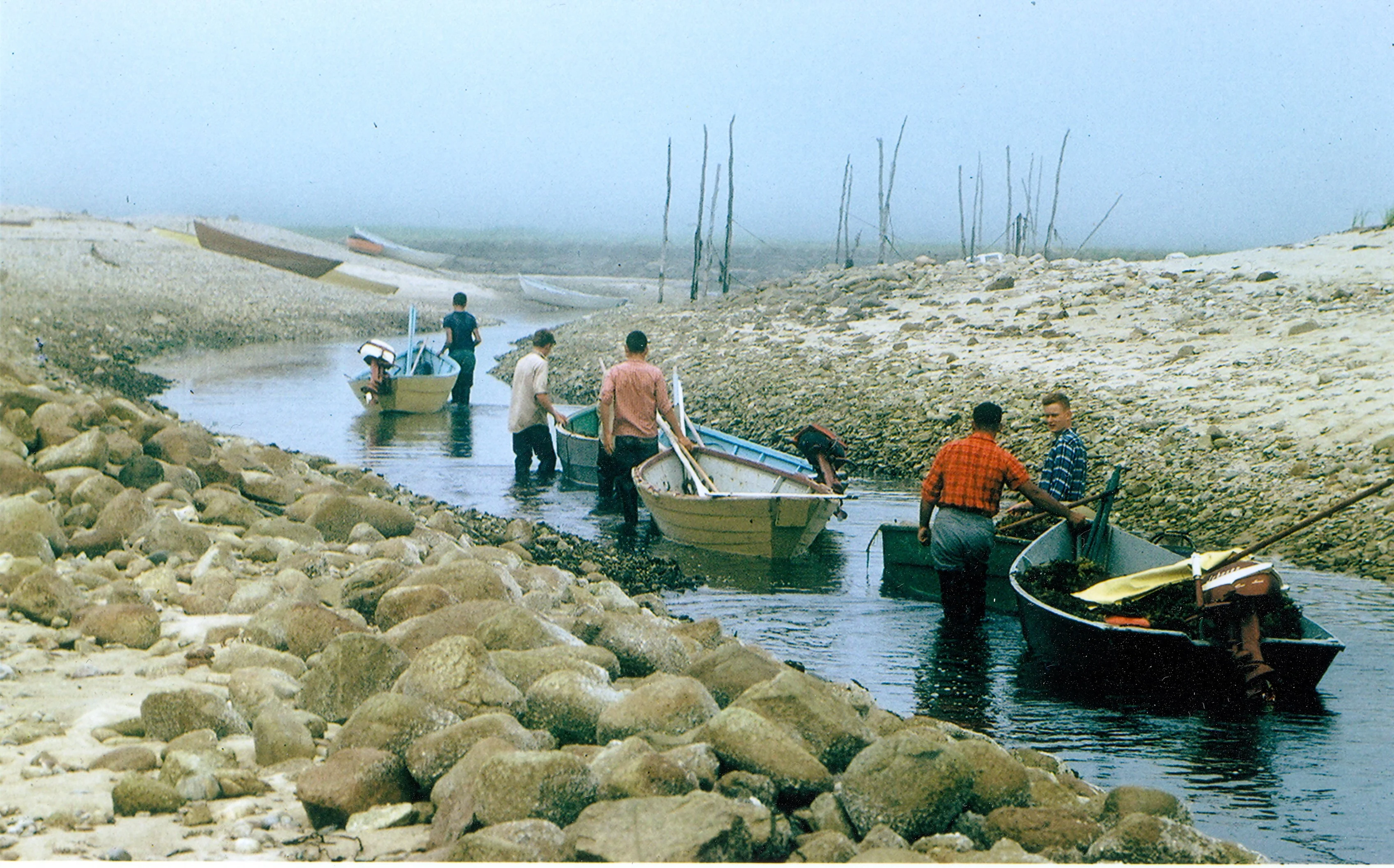 Skip’s first article in the series retraced the history of Shifting Lots Preserve in Plymouth, including the once-vibrant mossing industry in Ellisville Harbor. Photo from 1969, courtesy of Roger Janson, via Friends of Ellisville Marsh.