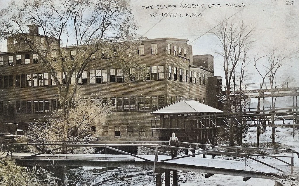 But bigger things were on the horizon. In 1810, as the Industrial Revolution was beginning, waterpower was once again instrumental in the establishment of the Marshfield Cotton and Woolen Manufacturing Company. A network of support enterprises helped the company thrive through the first half of the 19th century. Leavitt Delano's blacksmith shop and Elijah Ames' carpentry shop, among others, produced barrels, tools, and other necessities. Other factories produced textile dyes. Farming was largely replaced by factory work, which necessitated housing, boarding houses, a store, and a school.