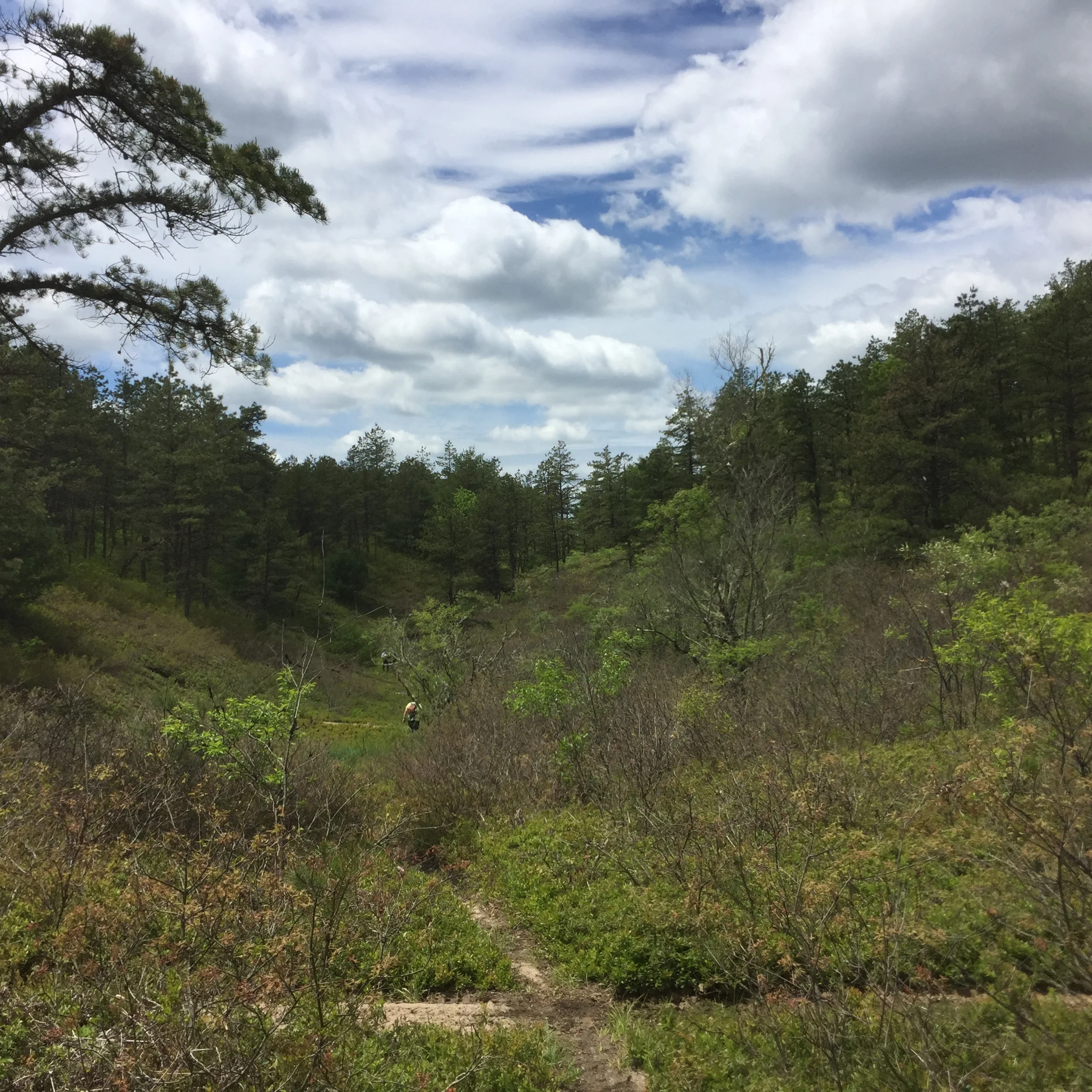 Traversing through the interior of Myles Standish State Forest was a particular pleasure. The Forest holds many attractions that elude the typical visitor, including the striking landscape of Cherry Pond Valley (the namesake pond is the headwaters of the Wankinco River). The valley is a steep-sided landscape with comparatively few trees that likely owes its appearance to a forest fire at some point in the relatively recent past. Most of the state forest’s terrain is comprised of so-called Pine Barrens, a woodland type dominated by Pitch Pine and Scrub Oak and adapted to frequent fires.